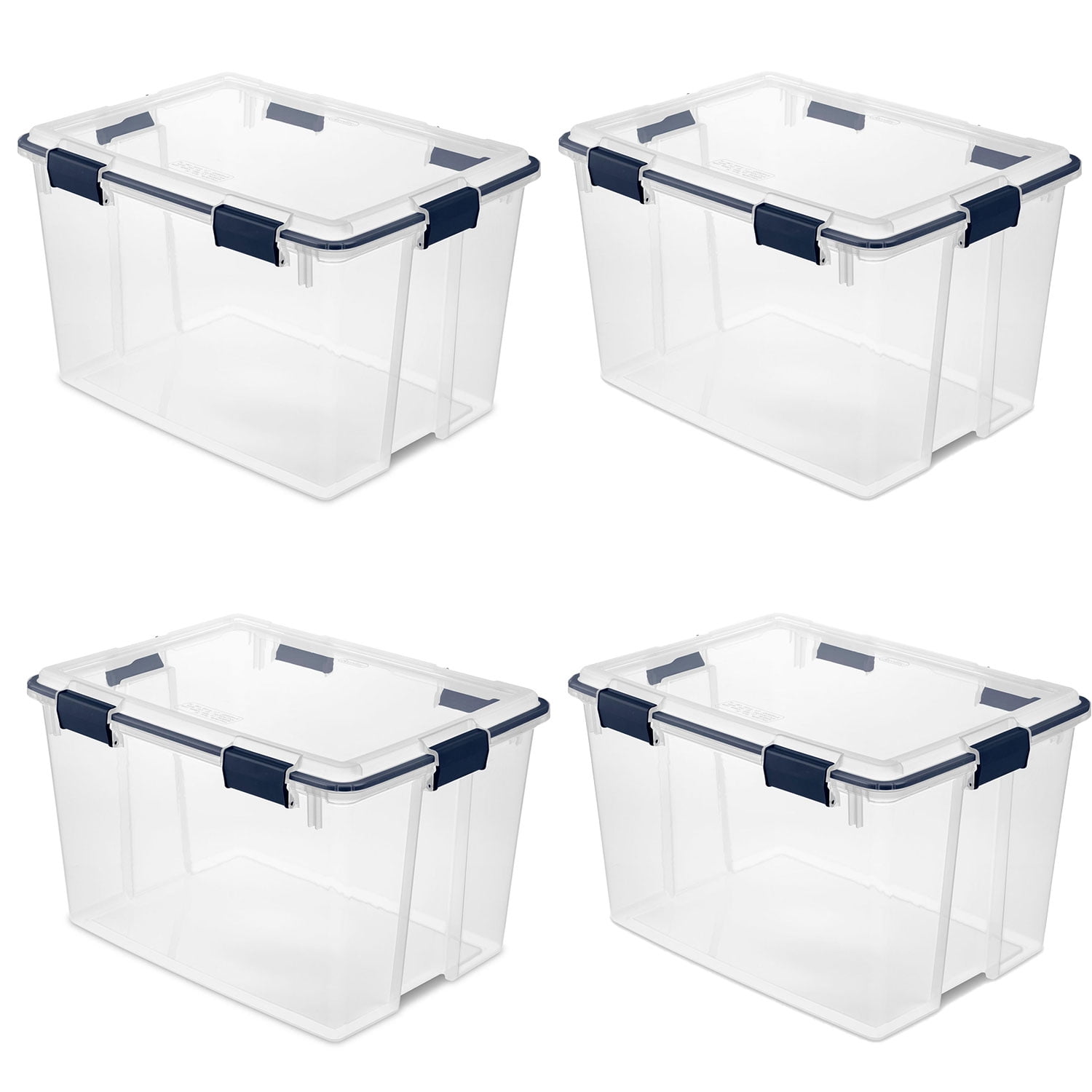 Sterilite 80 Qt Box Storage Bin With Lid Latch Clear Blue Cove 4 Pack Walmart Com