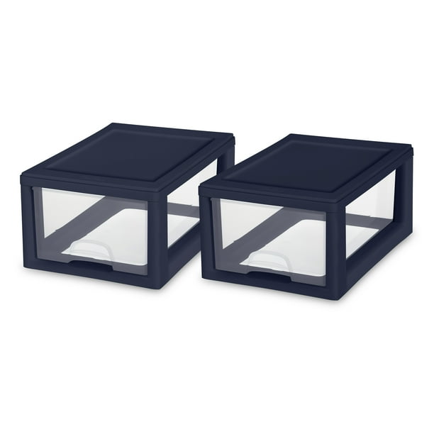 Sterilite Set Of 2 6 Qt Stacking Drawer Plastic Blue Cove Walmart Com